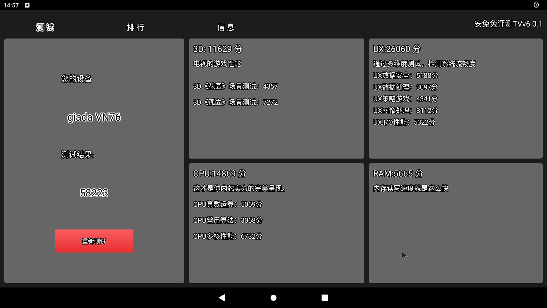 对于云终端来说,使用性能也至为重要,在性能测试中,我们在测试软件:Antutu 6.01、3DMark、PCMark、NenaMark进行跑分测试,测试结果表明Y-BOX SA1可应对轻度办公使用。
