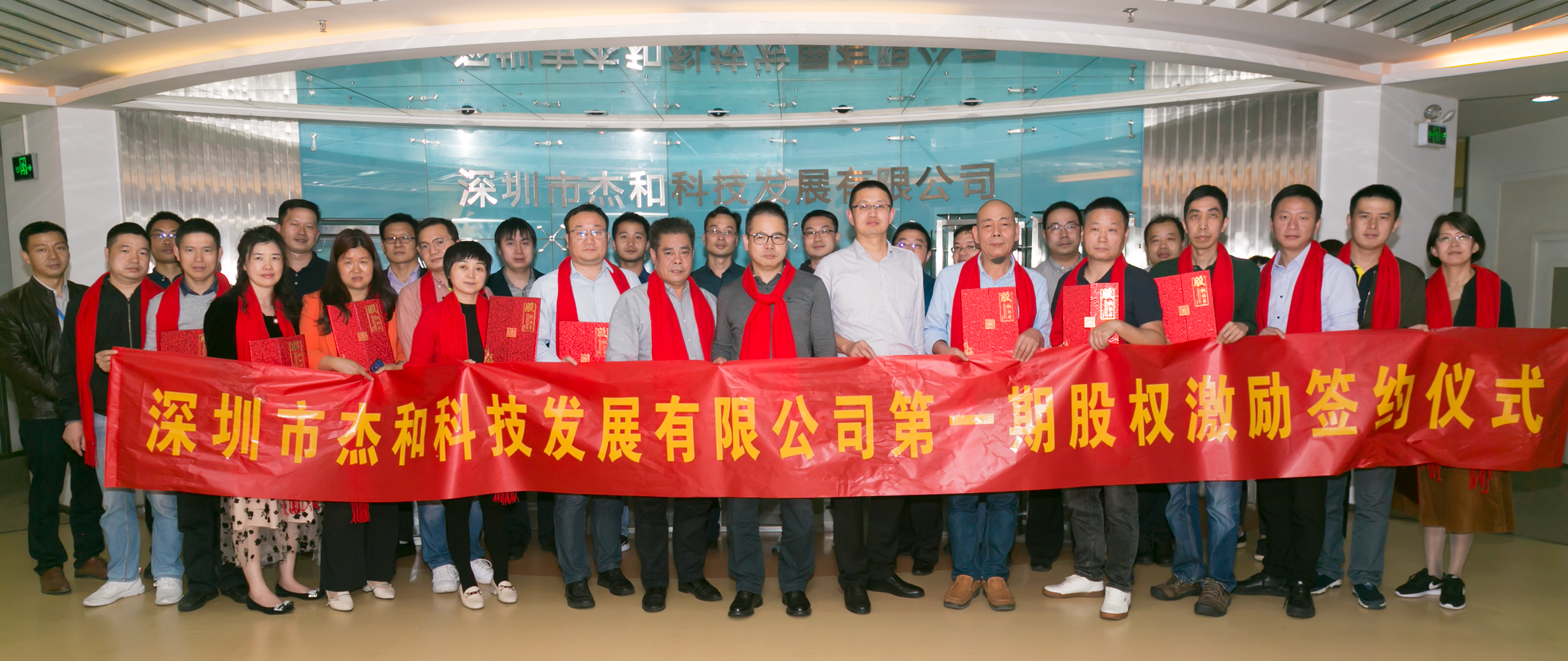 球盟会·QMH科技及东莞杰拓的一级、二级部门长,股权激励对象等相聚一堂,共同见证了公司的这一重要时刻。