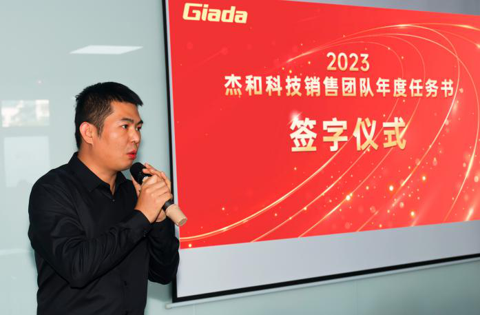 签约仪式上,总经理林坤杰先生回顾了2022年度营销战线所取得惊人的销售战绩,他表示,在2022年海内外经济形势严峻复杂的环境下,我们实现增长实属不易,我们也许是幸福者,便更可能是幸存者,面对未来我们不能松懈,对于一个公司营销是第一生产力,营销一定要先行,要打造以业务结果导向,开放,奋斗,实干的企业氛围和奋斗者精神,我们有愚公移山的精神,滴水石穿的毅力,脚踏实地,埋头苦干,积跬步以至千里,就一定能把宏伟目标变成美好现实。林总最后预祝各销售团队2023年业绩再造辉煌!