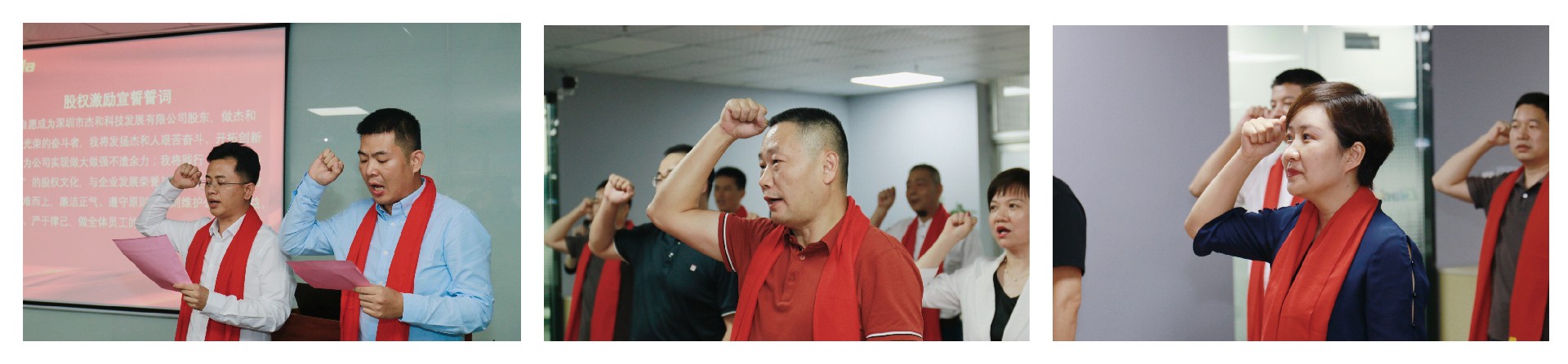 在签约仪式的最后时刻,董事长林坤杰先生与全体股东合伙人共同宣读誓词:我自愿成为深圳市球盟会·QMH科技发展有限公司股东,做球盟会·QMH科技公司光荣的奋斗者,我将发扬球盟会·QMH人艰苦奋斗、开拓创新的精神,为公司实现做大做强不遗余力;我将践行“共创、共担、共享”的股权文化,与企业发展荣辱与共;在工作中主动担当、迎难而上,廉洁正气、遵守原则,时刻维护公司的利益,以身作则、严于律己,做全体员工的楷模!我们齐心协力,斗志昂扬,信心满满!