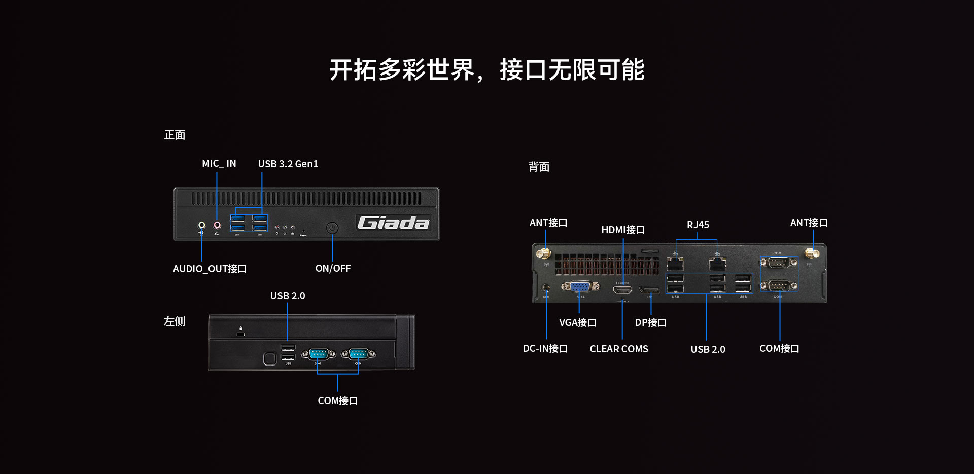 | 音频接口 | 1 x Audio out,1 x Mic in | |